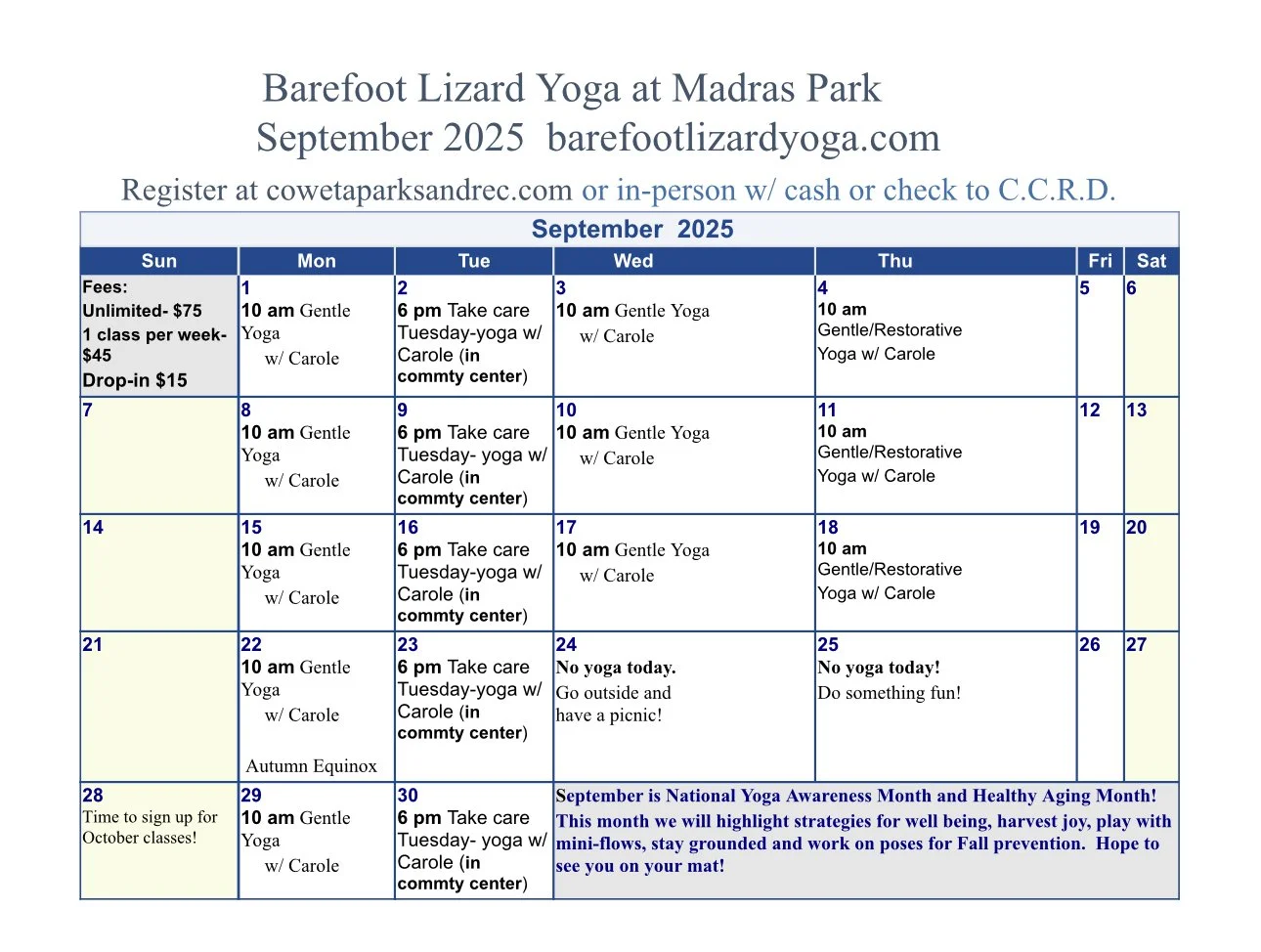except for Wednesday evening Gentle Yoga, which is held next door in the Community Center.